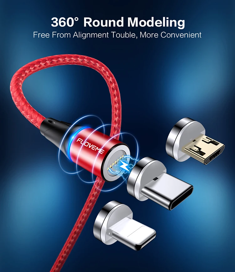 Features | 3A Fast Charging + 480Mbps Data Transfer + 360 Degree Round Magnet + LED Display |