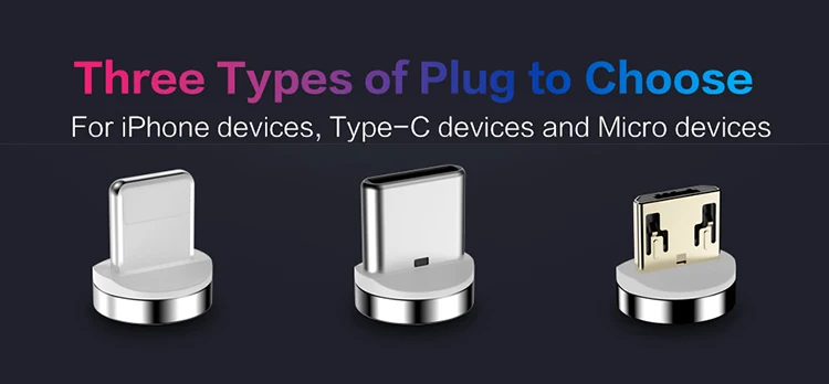 Types | 3A Magnetic Usb Cable for iPhone / Type C / Micro USB |