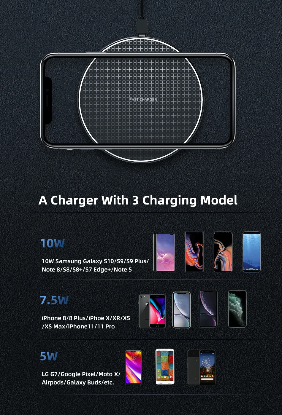 Universal Wireless Mobile Phone Charger for iPhone Huawei Ultra Thin Support IOS & Android Quick Charging Adapter Wholesale