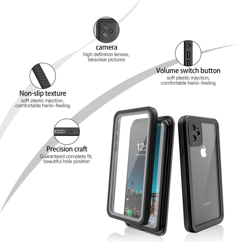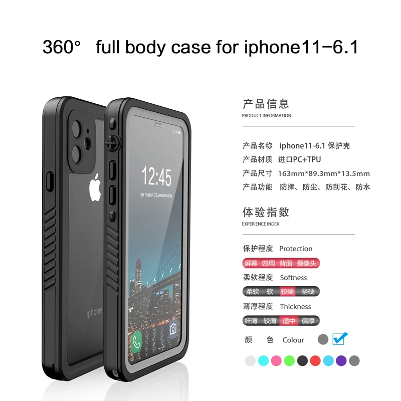 Product name | Wholesale IP68 Waterproof Shockproof Phone Cover Full Screen Protective Anti-Scratched Rugged Case for iPhone 11 5.8 inch | |||